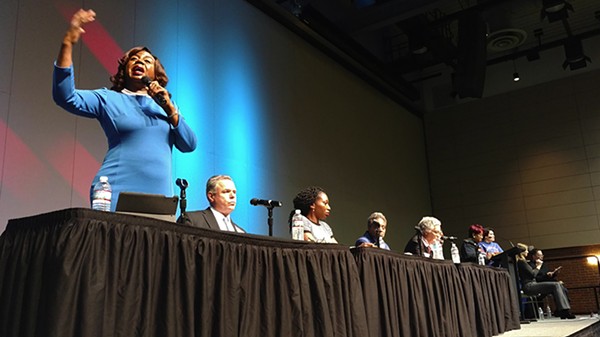 They came from all corners of this racially- and economically-segregated city on school buses rented out by community organizers, assuring that the elderly and disabled could make their voices heard as well. Every attendee had to pass through a metal detector and walk down a hall lined with cops, where they were then instructed not to boo or applaud the politicians on stage.
