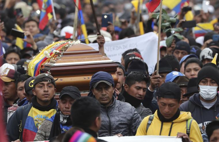 Ecuador protesters carry coffin of martyrs killed in unrest