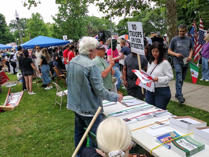 Detroit No Kings Day MNC staff outreach with lit. table